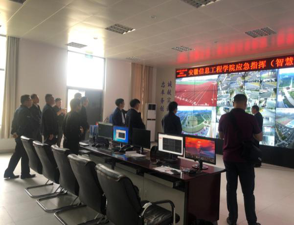 10月13日上午10点,广西市场监督管理局及广西工商学校一行在保卫处张祥处长陪同下参观我校应急指挥(智慧)中心建设情况。