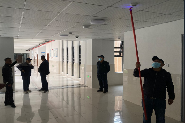 因消防系统联动测试时,会出现消防系统报警、断电、消防通风系统启动等现象,为防止师生恐慌,保卫处提前发布通知,确保涉及检查调试的楼宇师生提前知晓情况,并在测试当天安排物业安保人员维持秩序,确保测试过程有序平稳。测试当天保卫处主要对楼宇内烟感,应急照明灯,疏散指示灯,防火卷帘,室内消火栓等消防设施进行排查,并抽样检查消火栓出水、消防广播、火灾自动报警系统性能情况,对消防系统进行联动测试,检查出现场设备故障问题,分别记录并反馈给施工单位和消防维保单位进行维修,测试结束后及时恢复设备及供电,确保师生生活正常。