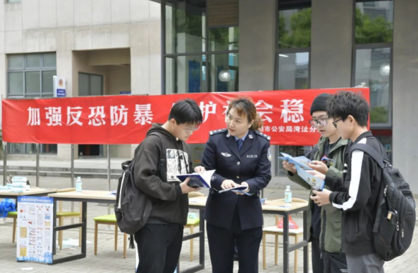 集中宣讲,提高认识。4月13日,湾沚公安分局民警来校开展全民国家安全教育日普法宣讲活动。此次活动,通过摆放宣传展板、发放宣传资料、现场互动交流等方式,向师生宣传国家安全相关的法律法规、危害国家安全的行为及后果,呼吁广大师生提高维护国家安全、反恐怖、反邪教的意识,以实际行动维护国家安全,营造和谐美好的校园环境。