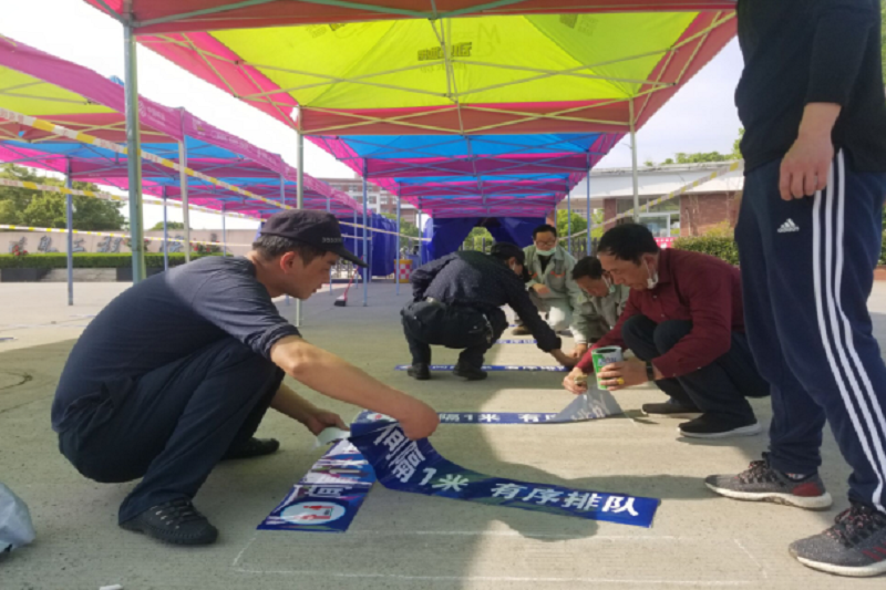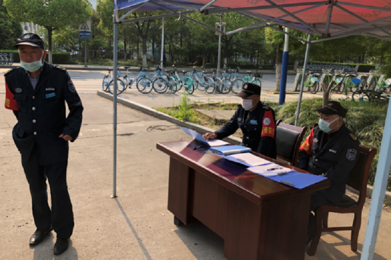 学校复学复课在即,为进一步做好疫情防控工作,保障开学报到井然有序。4月底,保卫处联合两校区物业安保部分别在文津校区南门、新芜校区东门报到点搭建测温帐篷,并在两个测温棚外搭建遮阳棚、设置警戒线,张贴一米间隔的地面标识,在开学报到当天对返校学生进行实时体温测量。除此之外,设立疫情防控复检区、留观区,以便对体温异常的学生进行复测。 学生返校时在校外排队等候,安保人员对行李进行消毒,核验学生信息,无异常者经人脸识别或校园一卡通进认证后进入校园。若体温异常,由保卫处通知医务室将学生带至疫情防复检区复查,同时按照学校疫情防控应急预案迅速采取措施。 此次开学防疫准备工作行动迅速,措施有效,为学生安全平稳复学提供了坚实保障。 (保卫处供稿)